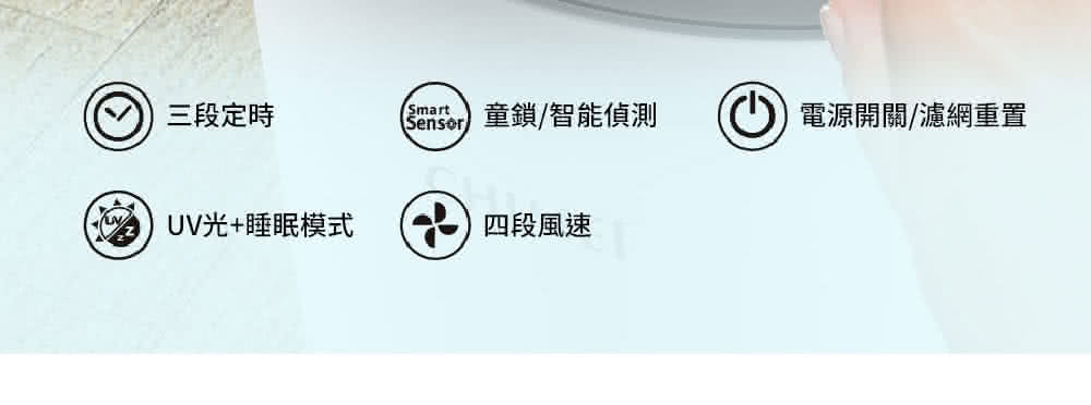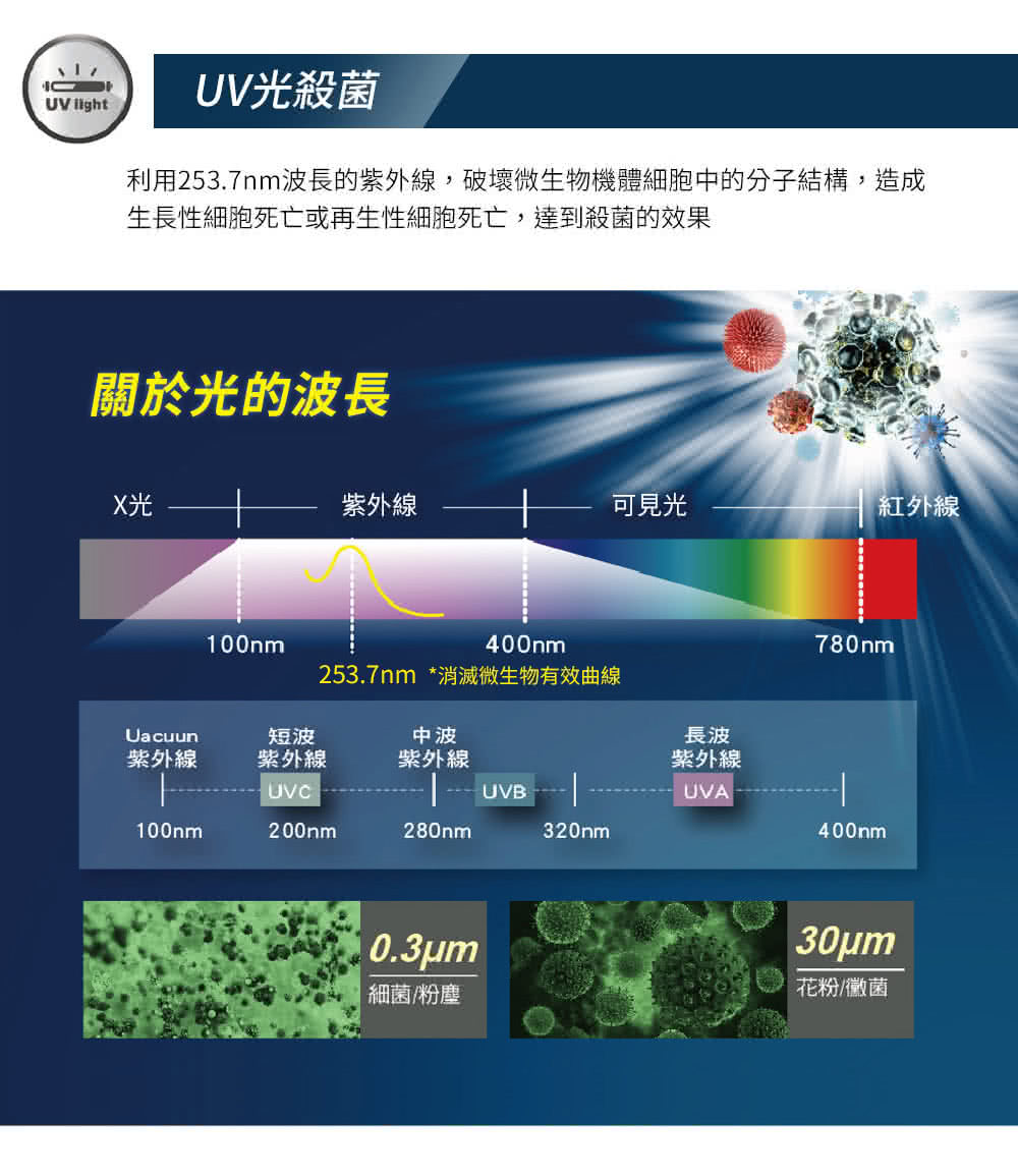 搭載UV紫外光,有效消滅細菌,還原乾淨空氣。