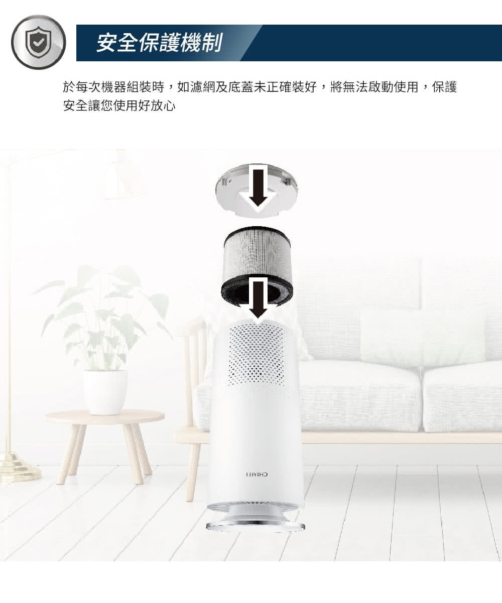 安全保護機制,濾網及底蓋若未正確裝好將無法?動,使用好安心。
