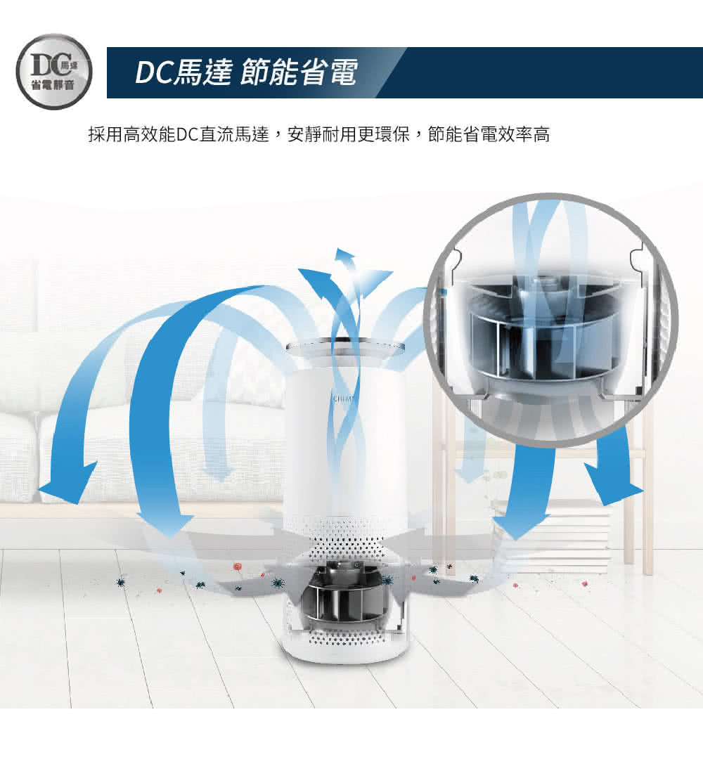 採用高效能DC直流馬達,節能省電更環保。